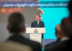 ئەمڕۆ یەکشەممە، 16ی تشرینی دووەمی 2025، مەسرور بارزانی، سەرۆکی حکومەتی هەرێمی کوردستان، لە ڕێوڕەسمی دانانی بەردی بناغەی قۆناغی دووەمی پرۆژەی وێستگەی پاککردنەوەی ئاوی ئاوەڕۆی هەولێر؛ گوتارێکی پێشکەش کرد.
