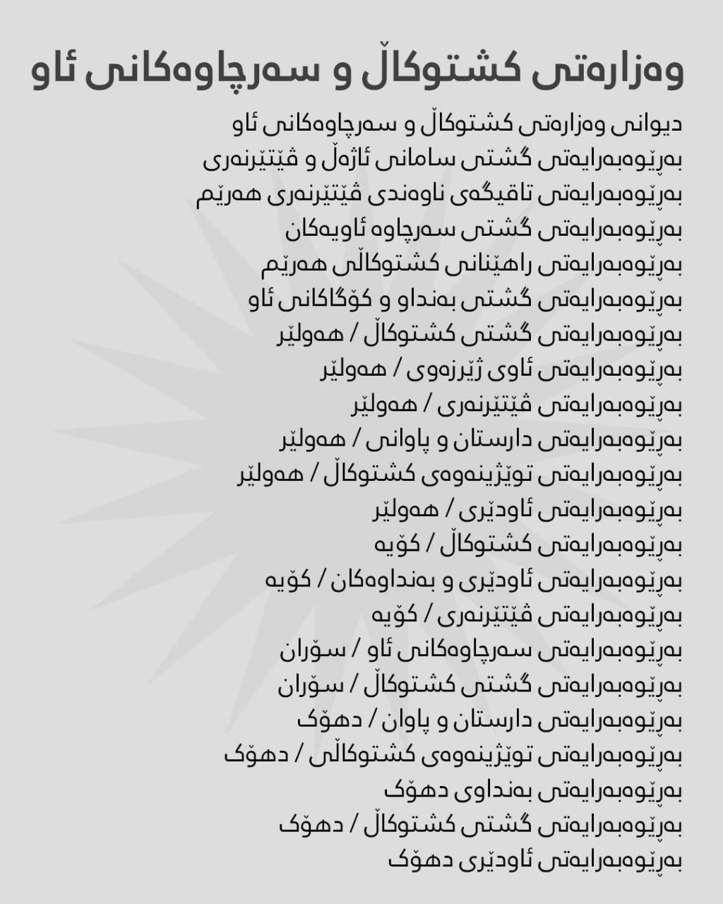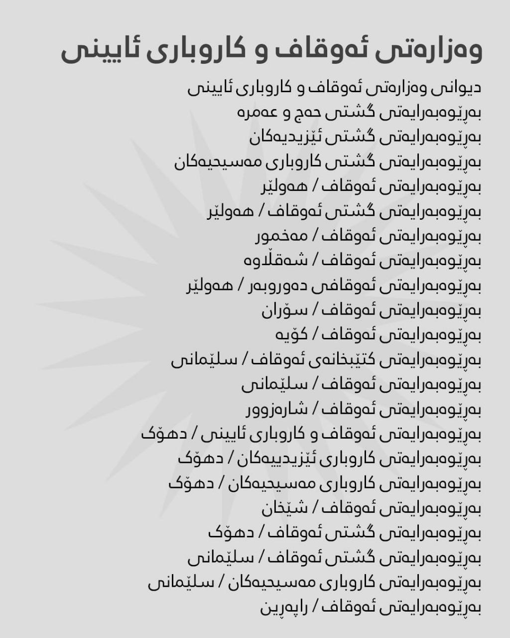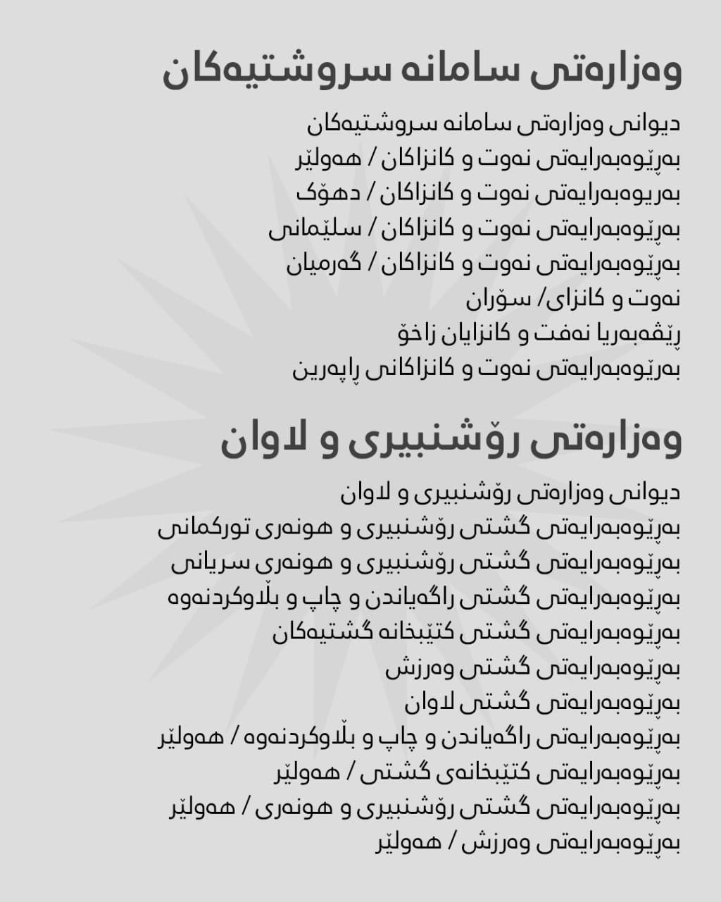 بەگوێرەی ڕاگەیێنراوی هەژماری من ئەمڕۆ سێشەممە 29-12-2025، مووچەی مانگی 10ـی ئەم وەزارەتانە دابەش دەکرێت: