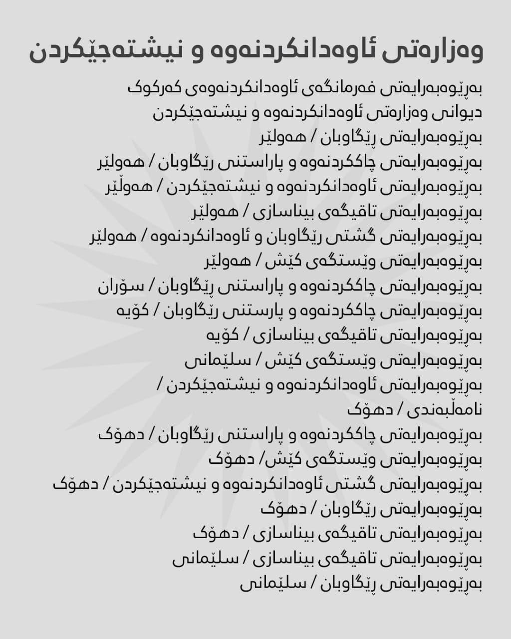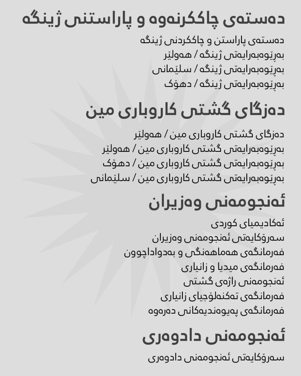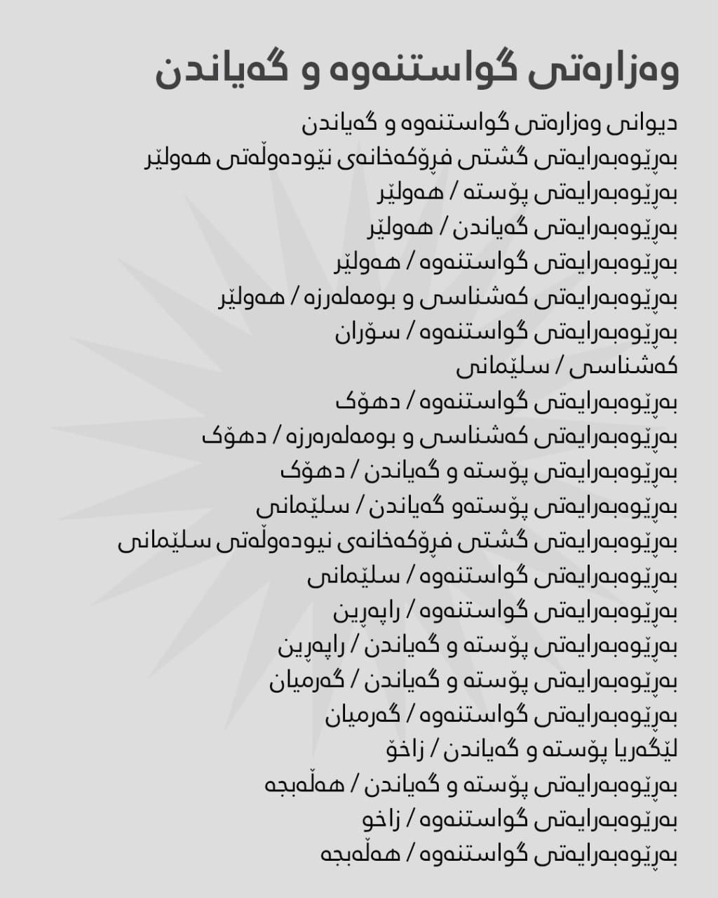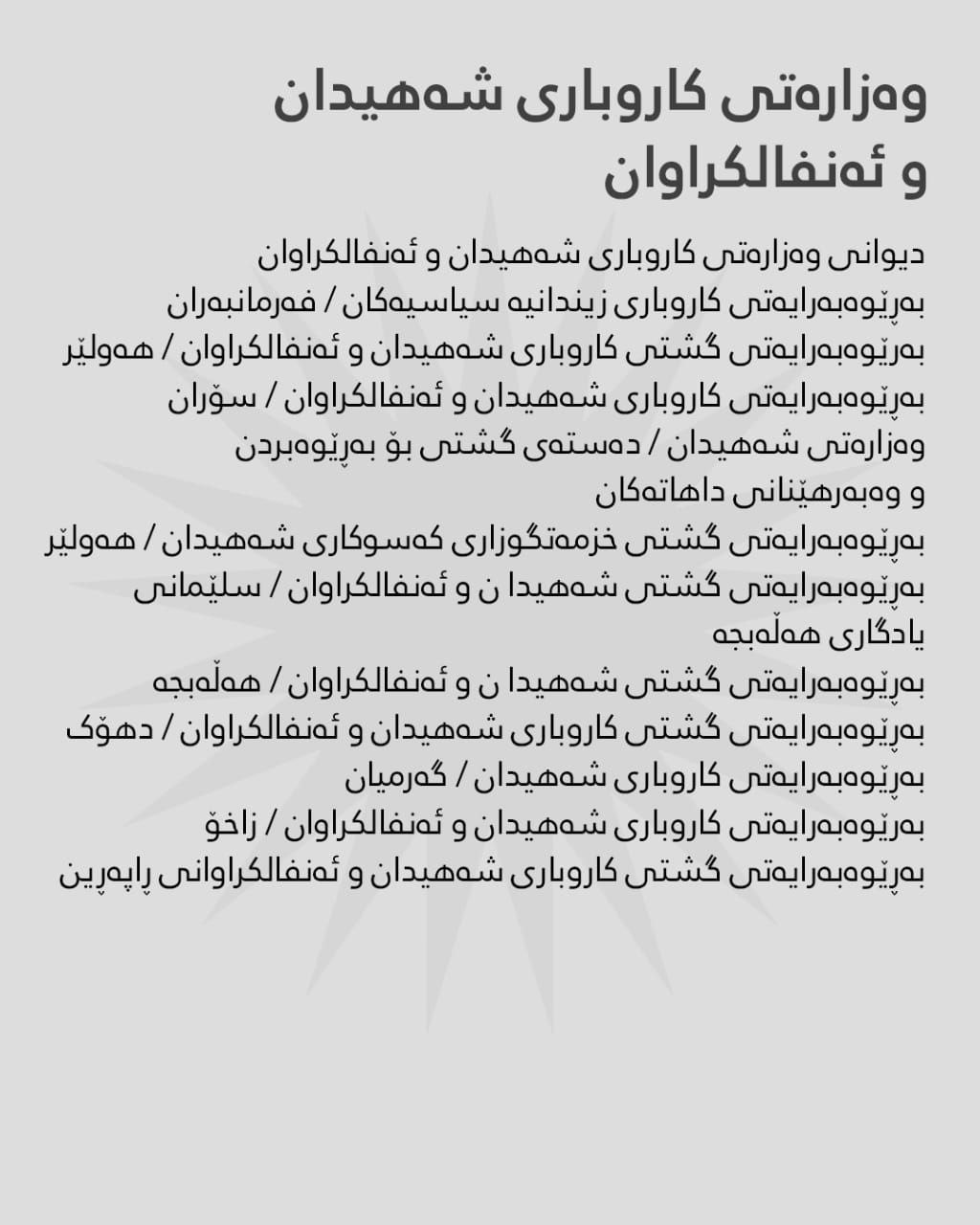بەگوێرەی ڕاگەیێنراوی هەژماری من ئەمڕۆ سێشەممە 29-12-2025، مووچەی مانگی 10ـی ئەم وەزارەتانە دابەش دەکرێت: