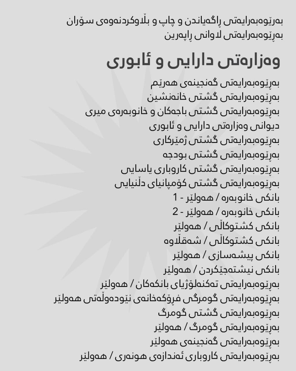 ئەمڕۆ ئەم وەزارەتانە لەڕێگەی هەژماری من مووچە وەردەگرن