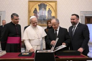 ڕۆژی چوارشەممە 21ی کانوونی دووەمی 2026، سەرۆک مەسعود بارزانی لە ڤاتیکان لەلایەن قەداسەتی پاپا لیۆی چواردەیەم پێشوازیی لێکرا.