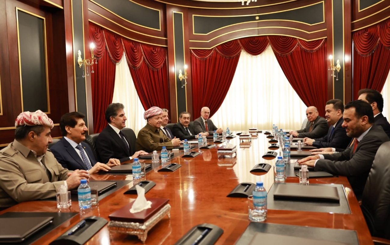 ڕۆژی دووشەممە 2ی شوباتی 2026 لە پیرمام سەرۆك مەسعود بارزانی لەگەڵ شاندێكی باڵای چوارچێوەی هەماهەنگی كۆبۆوە كە پێكهاتبوو لە بەڕێز محەمەد شیاع سودانی سەرۆكی هاوپەیمانیی ئاوەدانكردنەوە و گەشەپێدان و بەڕێز هادی عامری سكرتێری گشتیی ڕێكخراوی بەدر و بەڕێز موحسن مەندەلاوی سەرۆكی هاوپەیمانیی ئەساس و بەڕێز عەباس ڕازی سكرتێری گشتی چوارچێوەی هەماهەنگی.