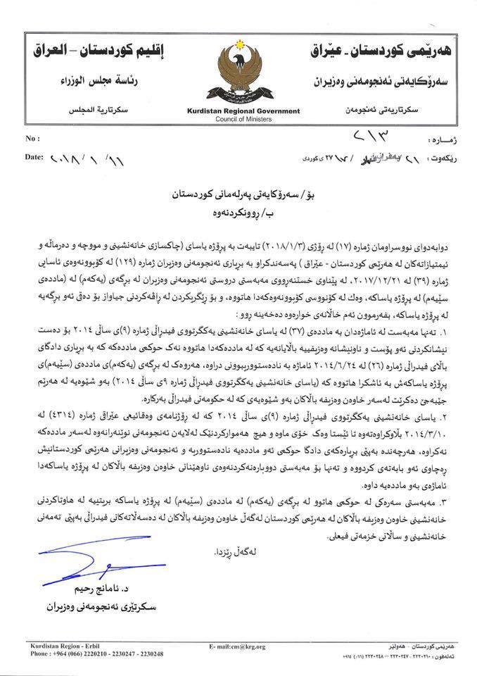 ئەنجومەنی وەزیران روونكردنەوە لەبارەی خانە نشینە پلەباڵاكانەوە دەدات